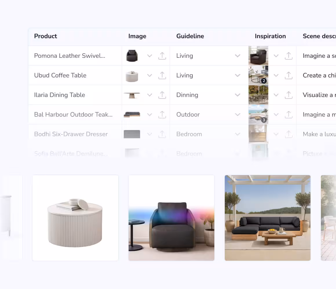 Snappr’s full-service AI delivers showroom-quality home visuals without the usual effort. We handle the creative end to end so your team can focus on scaling your brand. Just share the product, mood, and setting.