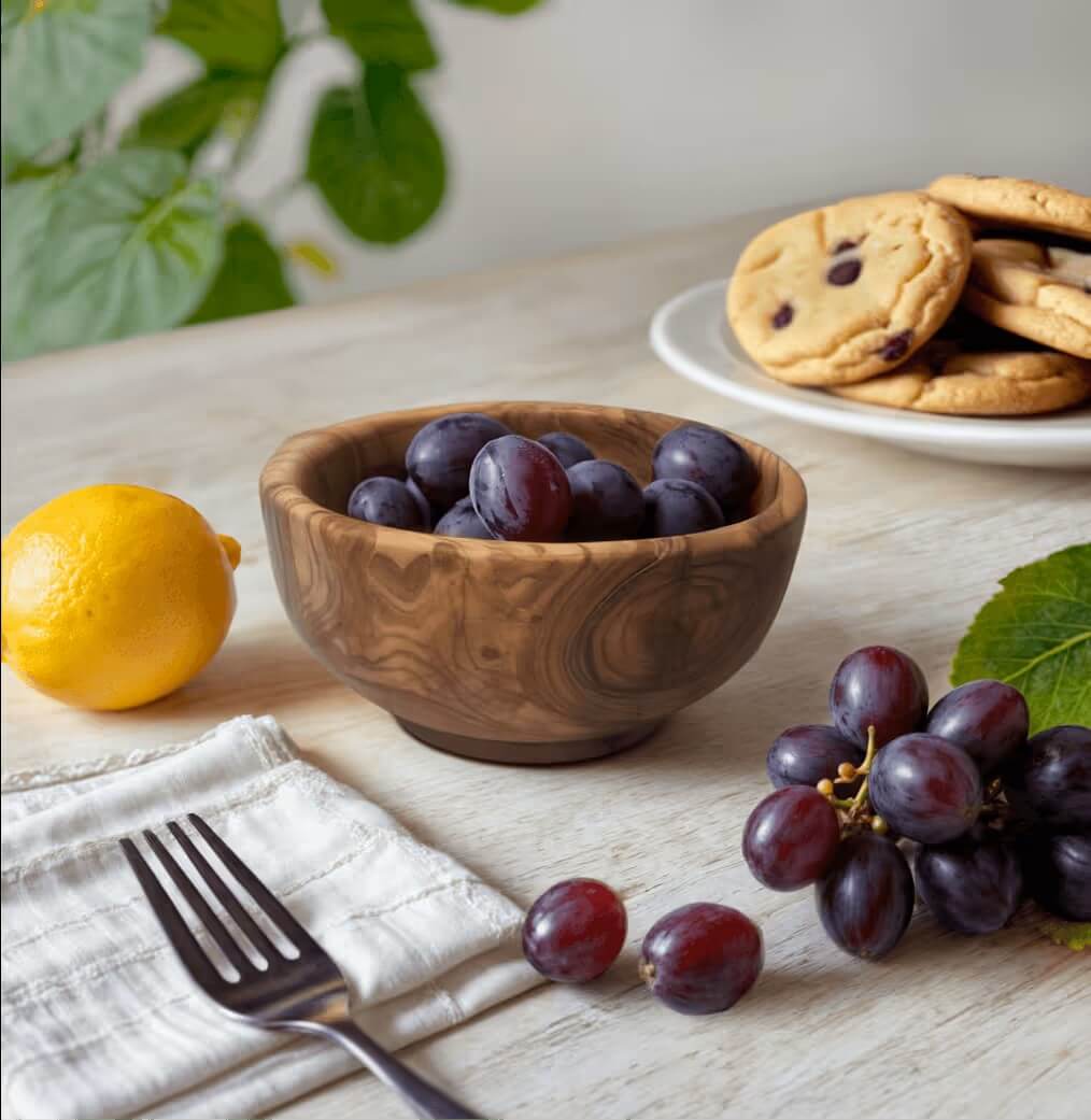 The photo shows off the deeper reds and purples of the grapes. It also lets the eyes wander to the fresh-looking cookies off to the right. It’s simple and does the job.