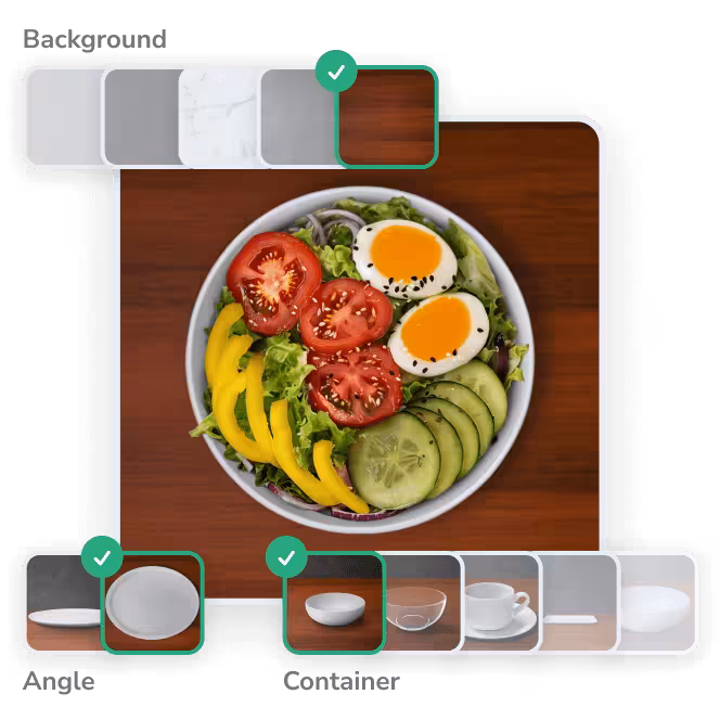 Generate images that match your brand’s look, including background, angle, cropping, and more. Get consistent results across all your menus
