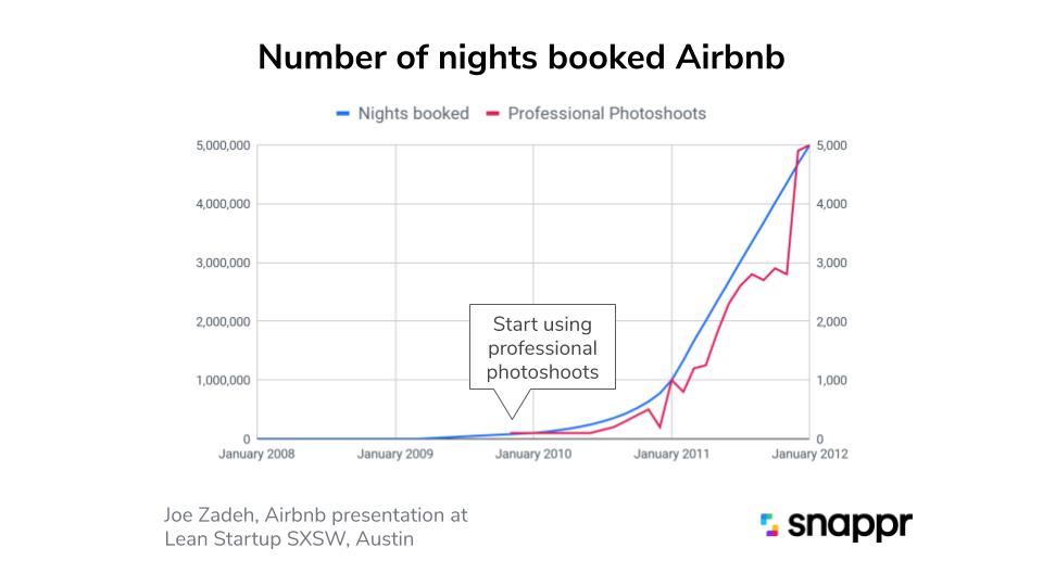 To test this theory, Airbnb piloted a new professional photography program, going door-to-door and taking professional photos for listings in New York City. The results were immediate and the company's monthly revenue doubled [2].