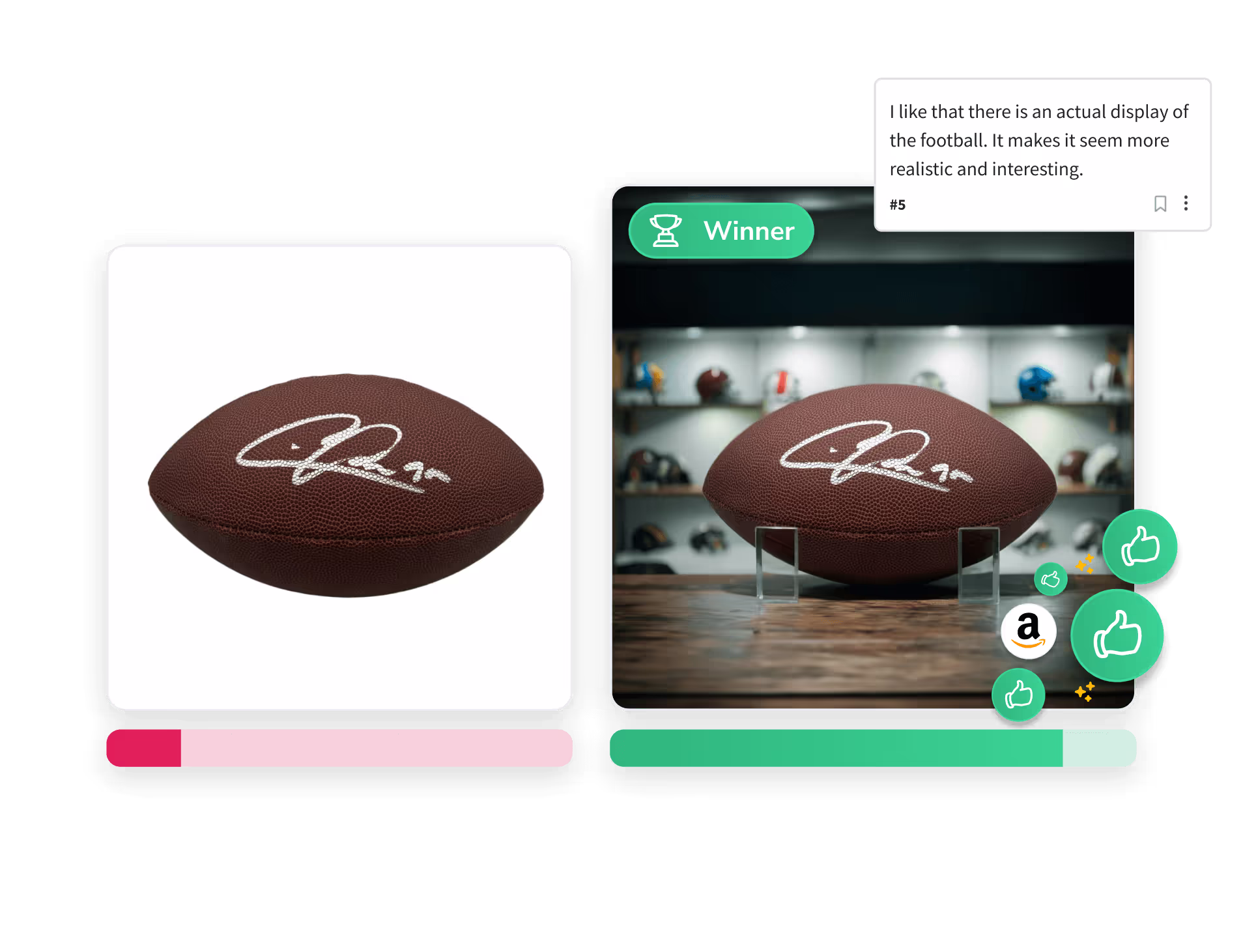 Snappr delivers outstanding results when compared to competitors’ images. If the Snappr image doesn't win, we offer free improvements for our paid users to ensure satisfaction.
