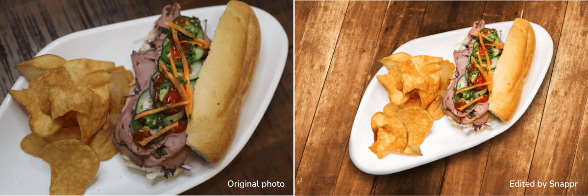 Today’s dining market, whether you make the food or deliver it, is a competitive business. Raise your conversion rates with professional food photography, and make it easy on yourself - automate and scale up with Snappr for Enterprise. Can’t afford new photos? Let us make your UGC and old photos look new again. Our Central Editing team is here to help and as you have seen, we can fix almost anything. Note: each of those fixes were under $15!